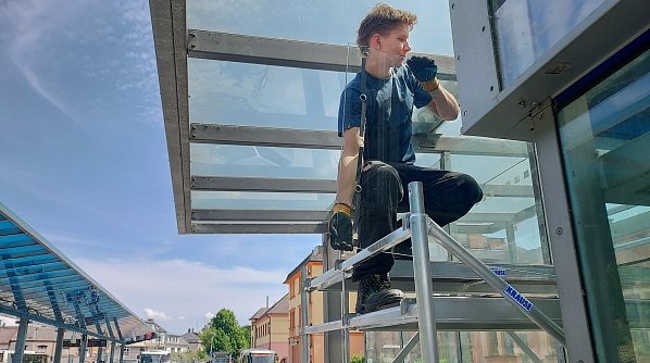 Na dopravním terminále Jana Pernera jsme očistili sklo hodin nad výtahem do podzemních garáží.