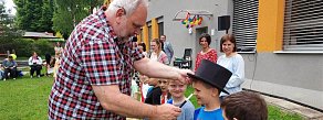 | Z předškoláčků se kouzlem stali prvňáčci Ve čtvrtek odpoledne proběhlo v MŠ Habrmanova pasování předškoláčků na školáky. Se školkou se však neloučily pouze děti, ale také paní ředitelka Hana Najmanová, která po devatenácti letech ve funkci odchází do zaslouženého důchodu. Šerpu dětem nasadil českotřebovský starosta Zdeněk Řehák a samotnou proměnu dětí ve školáky pak dokonal kouzelník Jirka, který jim nasadil svůj klobouk a začaroval hůlkou. Následovalo představení plné magických triků. | | | | | | Organizátoři benefičního Festivalu Společně děkují za podporu Děkujeme návštěvníkům sobotního festivalu, sponzorům, FK Česká Třebová, místním organizacím, samosprávě města, všem brigádníkům a každému, kdo se zapojil jakoukoliv aktivitou. Velký díky taky patří také interpretům, kteří se vzdali velké části svého honoráře, ani nevíte jak si toho vážíme. Celá akce není jen o výběru peněz, ale ukázali jsme i Mirce, že její osud vám není lhostejný. Organizátoři akce Festival společně | | | | | |