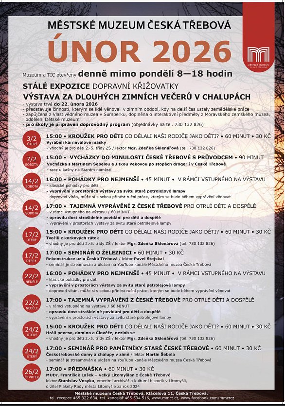Na místo události byl povolán vyšetřovatel příčin požárů, který si k šetření přizval také zástupce Institutu ochrany obyvatelstva Lázně Bohdaneč. Příčina vzniku požáru a výše vzniklé škody jsou v současné době předmětem dalšího šetření. | | | | | | Týden sportu 2026 - výzva pro sportovní kluby a zájemce o vystoupení Tak jako každým rokem probíhají v rámci odpoledního programu na Starém náměstí, kromě vystoupení kulturních, také prezentace českotřebovských sportovních klubů. Pokud v našem městě pracujete s mládeží, nabízíme i vám možnost ukázky vaší činnosti. Umožňujeme dětem prezentaci jejich dovedností, a to před publikem na předpódiu Týdne sportu na Starém náměstí v České Třebové. - velikost pódia 8 × 5 m - Délka vstupu: 3–10 min. - Datum: 15.–19. 6. 2026