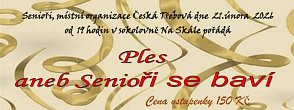| Ples aneb senioři se baví Hudba, tombola a domácí zákusky. Sokolovna Na Skále / Sobota 21. února / od 19:00 | | | | | | O Šípkové Růžence Hraje divadelní společnost Julie Jurištové. Malá scéna / Neděle 22. února / od 15:00 / Vstupné: 80,- | | | | | |
